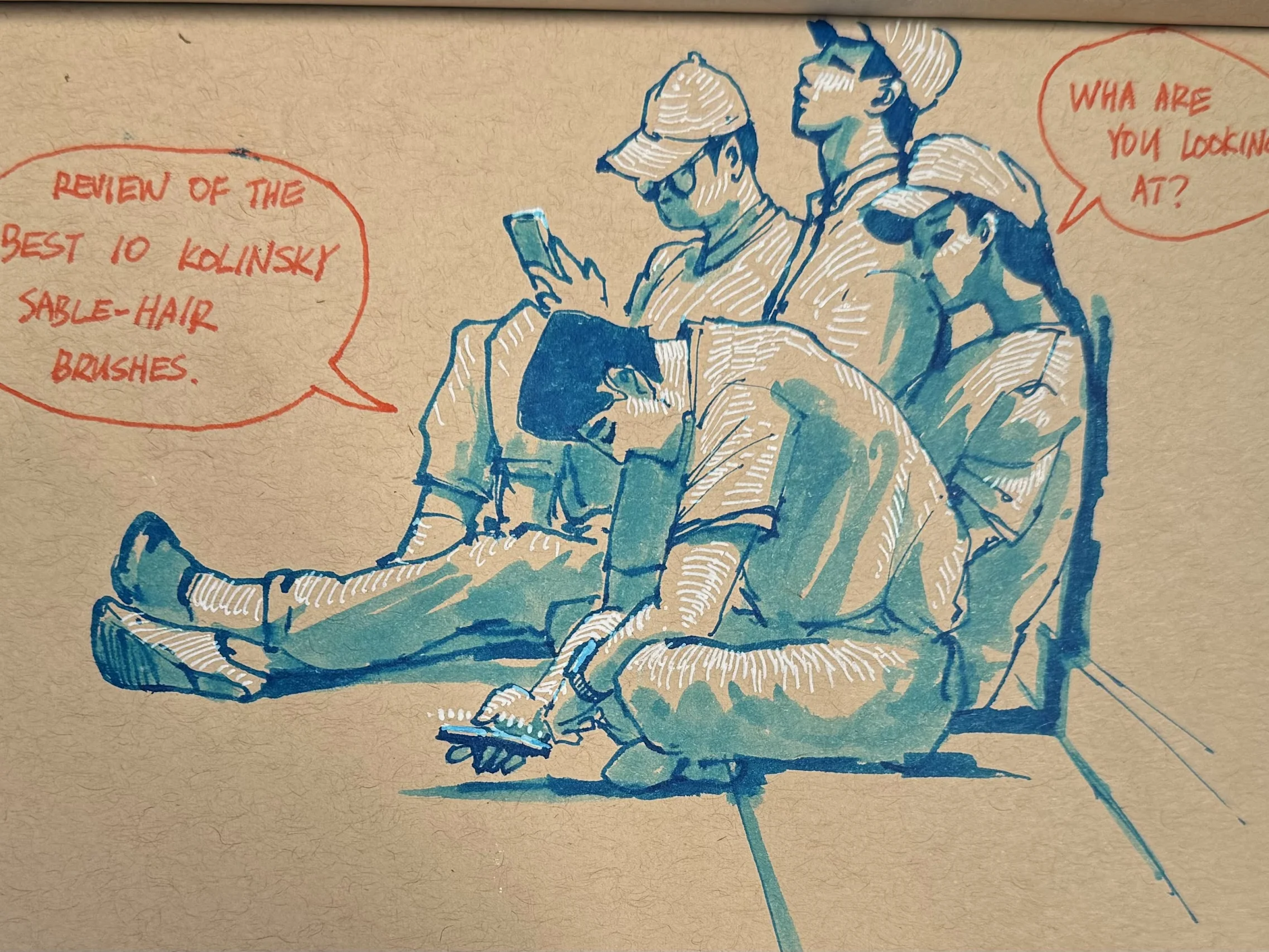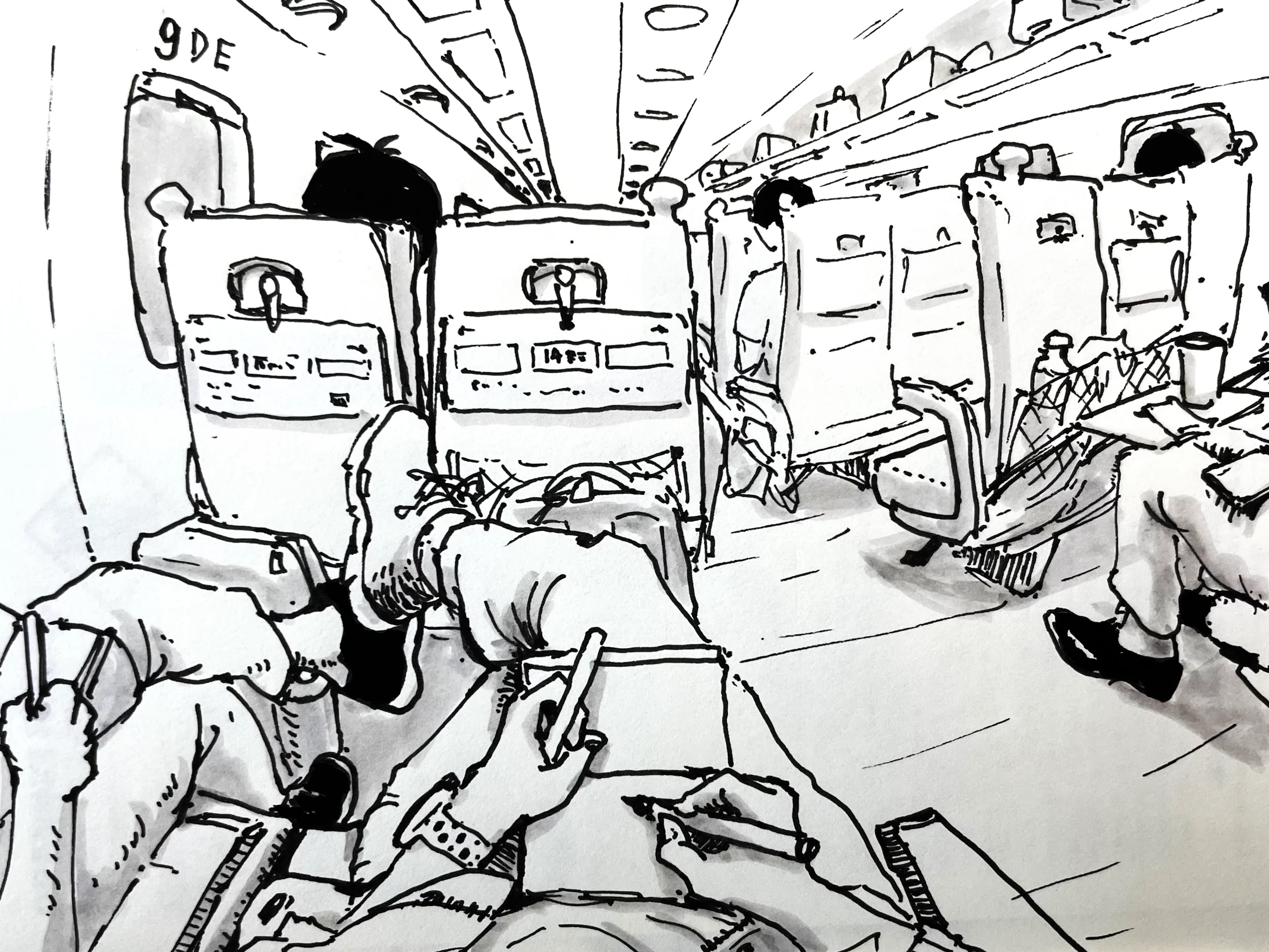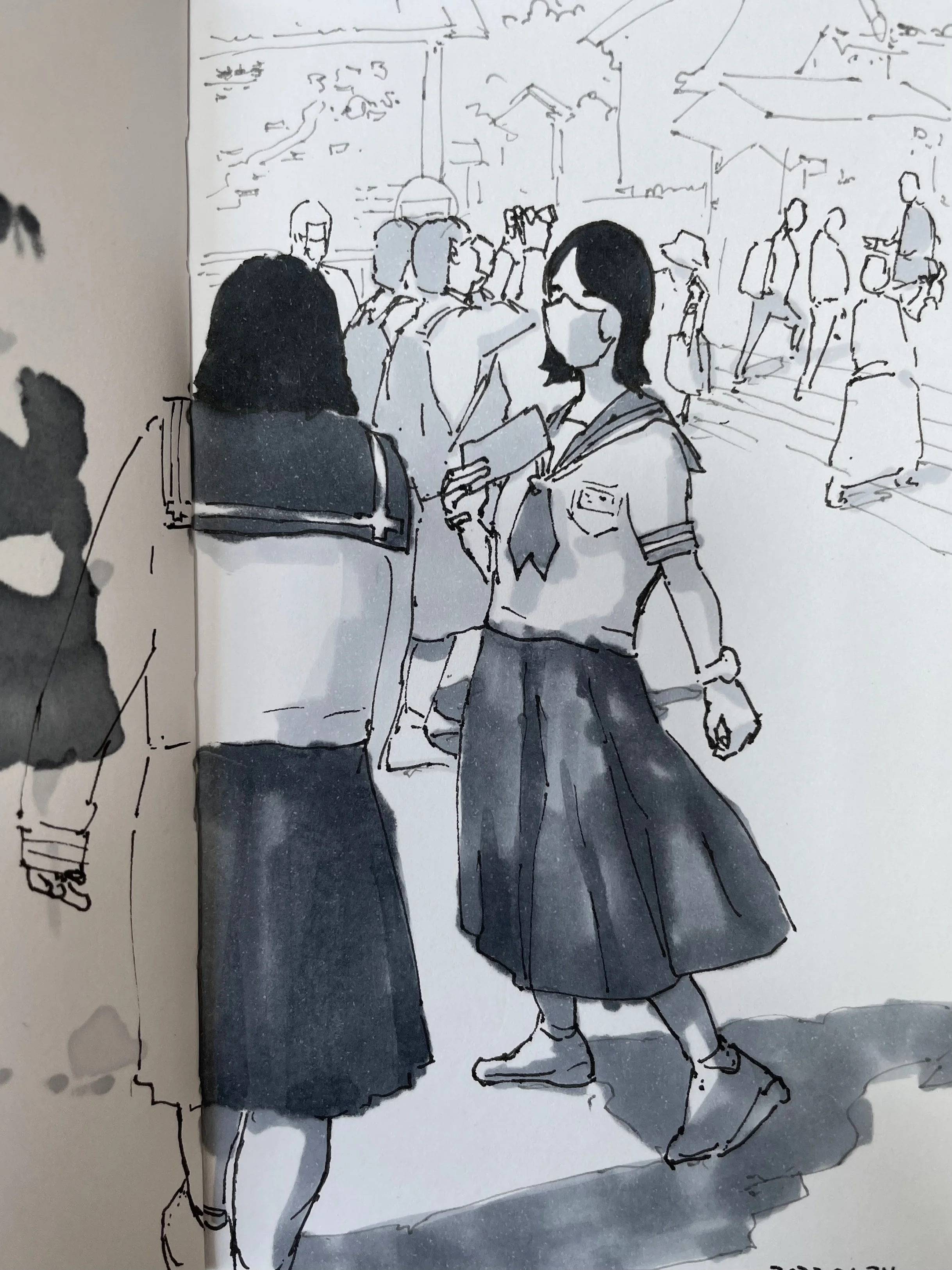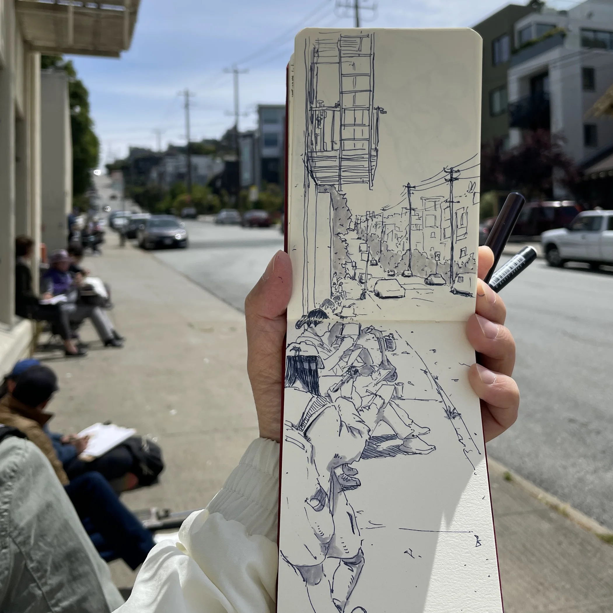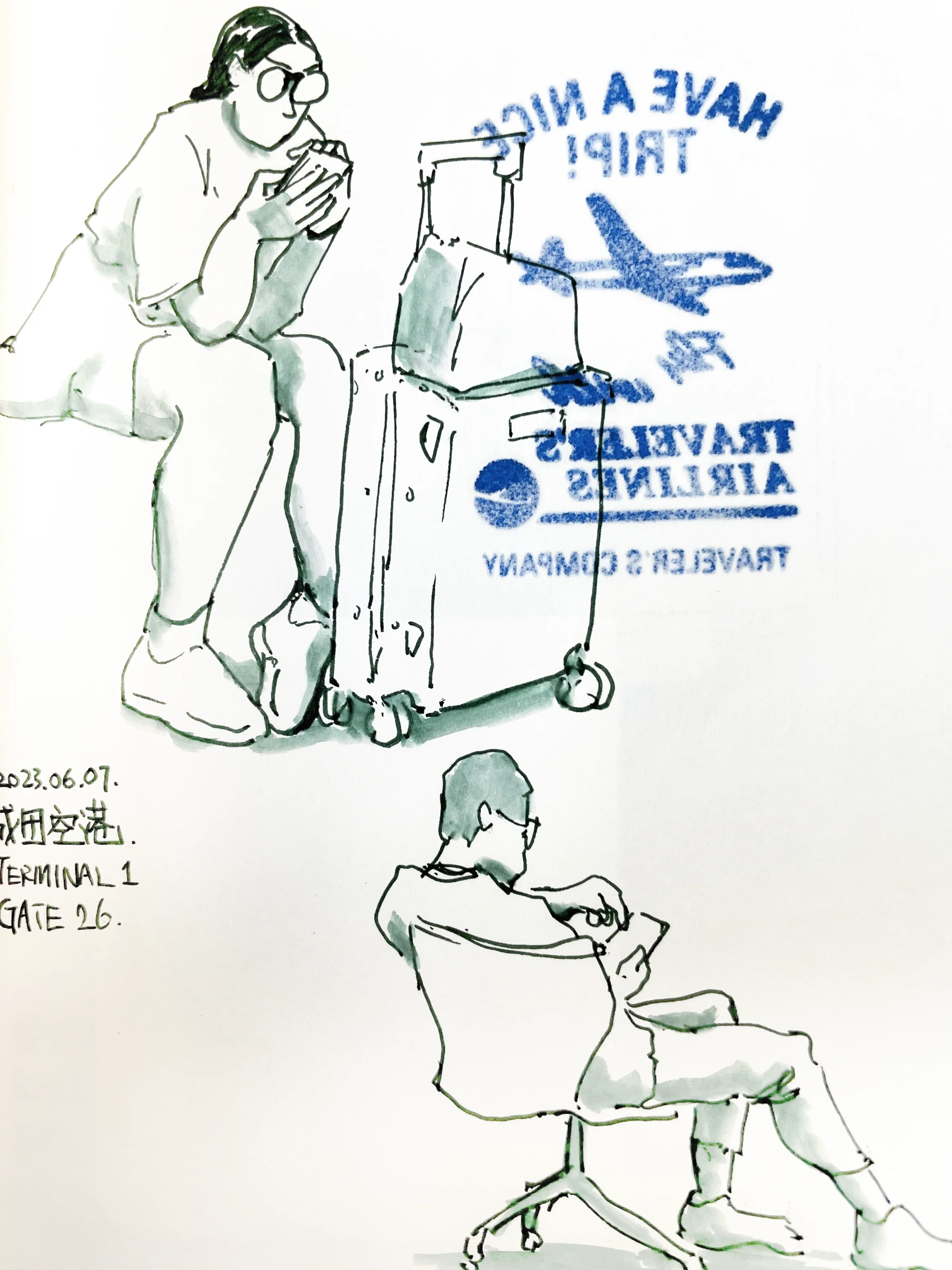 Travel sketching is a way of recording. I also use it as a break from rushing around, or making a boring commute more fun. I usually carry a sketchbook with me while traveling. Occasionally I will draw on iPad if I have more time.